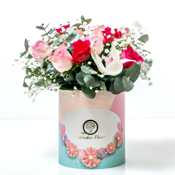 Σύνθεση σε Κουτί 18εκ με Ορχιδέα Συμπίντιουμ, Τριαντάφυλλα
