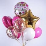 Μπουκέτο με Μπαλόνια Happy Birthday Ροζ – Χρυσό